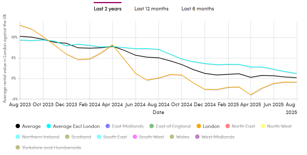 London is no longer moving in unison. Just 9 of the 21 London regions tracked are now showing year-on-year rental increases, despite 15 boroughs seeing rises in August alone.