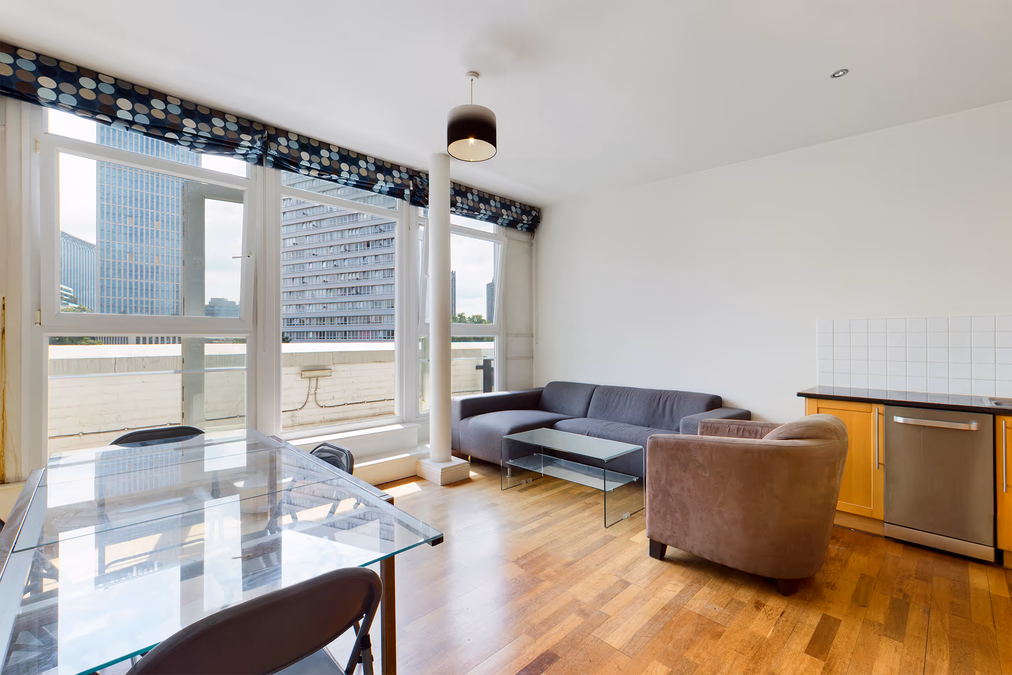 Set within this popular City conversion near Old Street Station, is this lovely, bright and airy apartment laid out over two floors; on the 4th floor is the entrance, built-in storage cupboards and a large master bedroom with access to a private balcony. On the 5th floor is the open-plan living area, a contemporary fitted kitchen, and enough space for dining. The living area also boasts wall-to-wall glass doors leading to another private balcony. Also located on this floor is another ample-size double bedroom, and a brand-new stylish bathroom. This apartment is fully furnished to a very good standard and benefits from parquet flooring, large double-glazed windows and high ceilings.