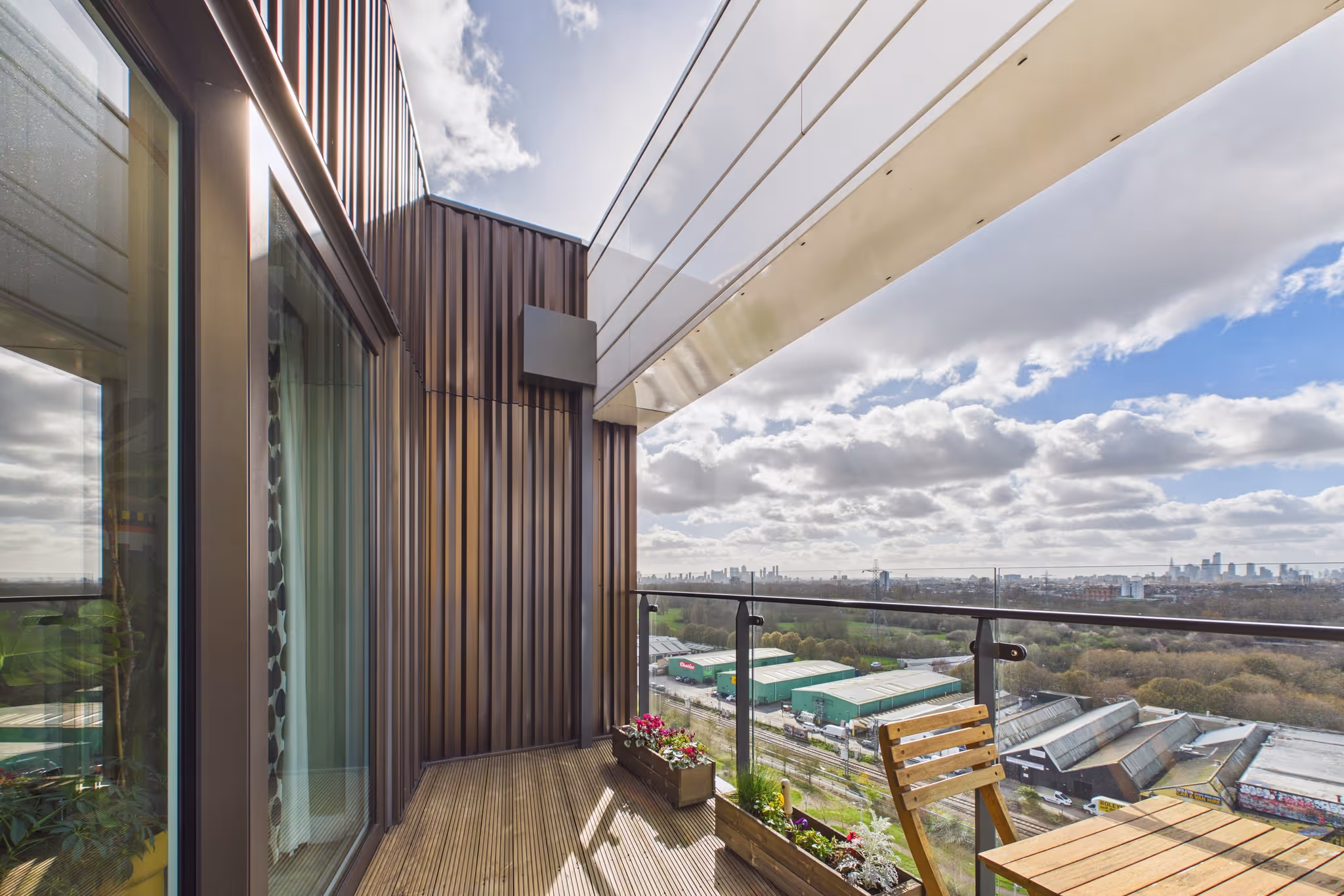 Step over to the wrap-around east terrace, spanning the building's corner, and you've got a choice of outdoor spaces that most houses would be envious of. The architecture plays its part too, with some creative beam and line detailing on the balconies that lifts the whole exterior aesthetic.