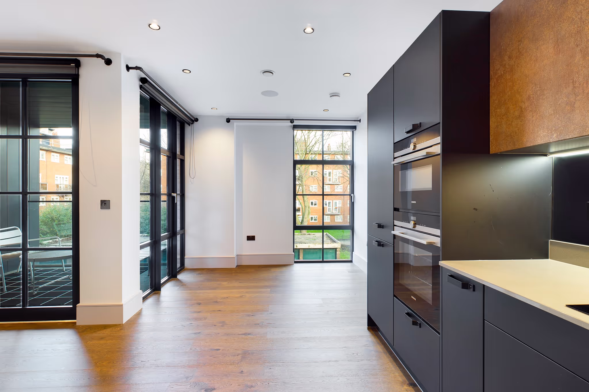 Situated on the first floor, the flat is finished to an impeccable standard and boasts high ceilings, a generously sized enclosed balcony, and integrated surround sound speakers. The property also features a spacious bedroom with built-in storage, a beautifully designed modern kitchen, and a sleek, stylish bathroom.
