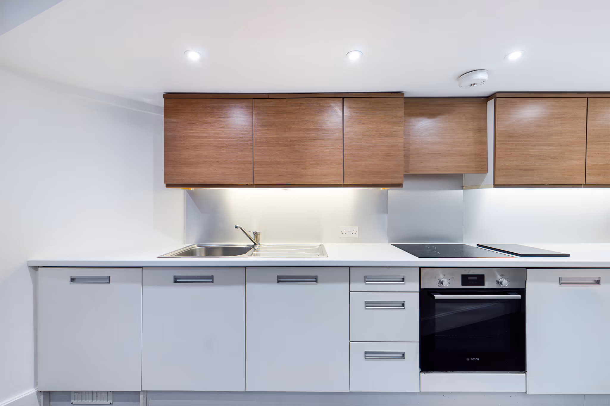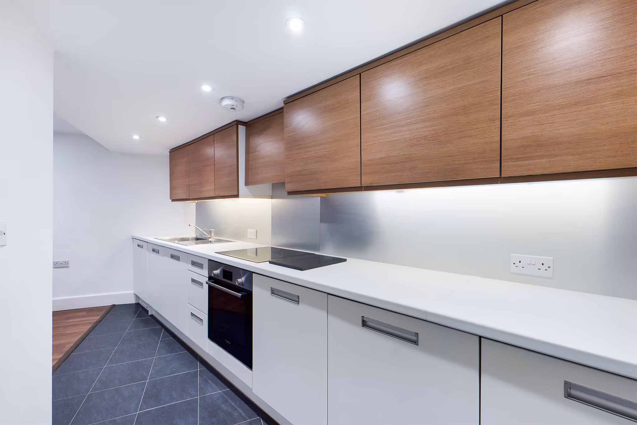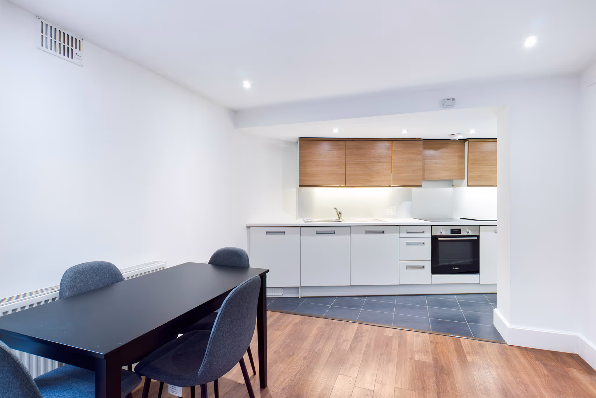 This light and bright lower ground floor apartment is ideal for a professional or a couple! There is a good-size open-plan reception with neutral decor contrasting the dark-wood flooring, an ultra-stylish fully-applianced kitchen, one double bedroom, modern shower room, wooden flooring throughout and Gas Central heating.