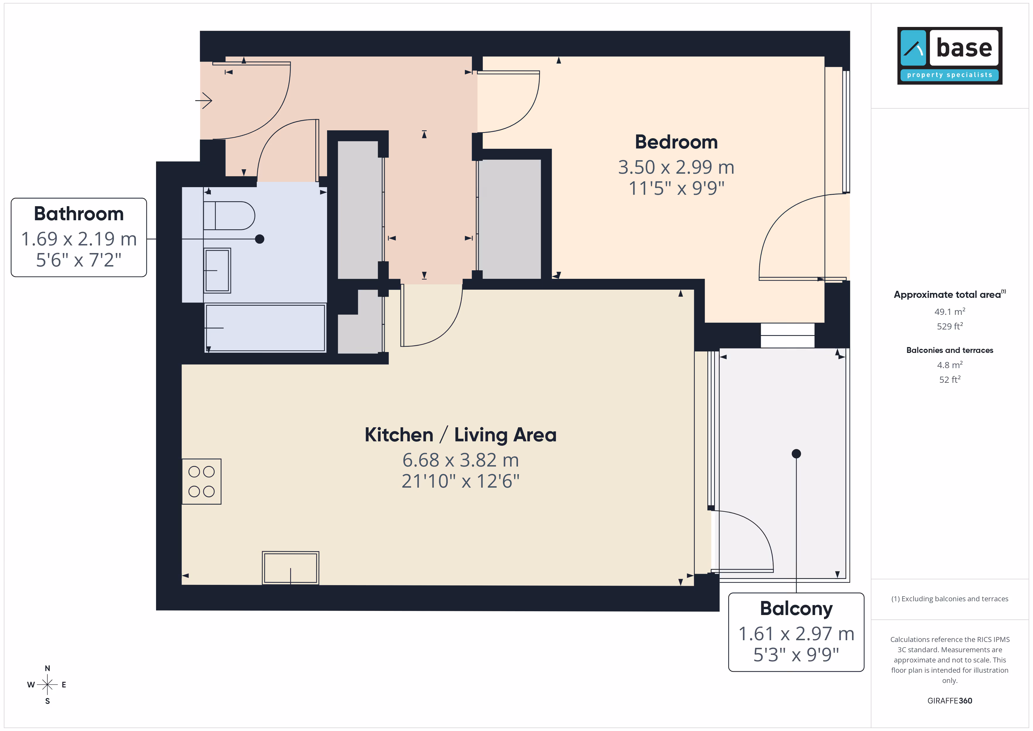 Boasting a practical layout that allows for well proportioned rooms, the internal hallway also offers a generous amount of cupboard storage. Set on the second floor, the property comprises a modern bathroom with full sized bath/shower combo, a bright bedroom with windows on two walls, and an open-plan living room and kitchen. Step out onto the balcony to enjoy your own private outdoor space, accessible from both the reception and the bedroom.