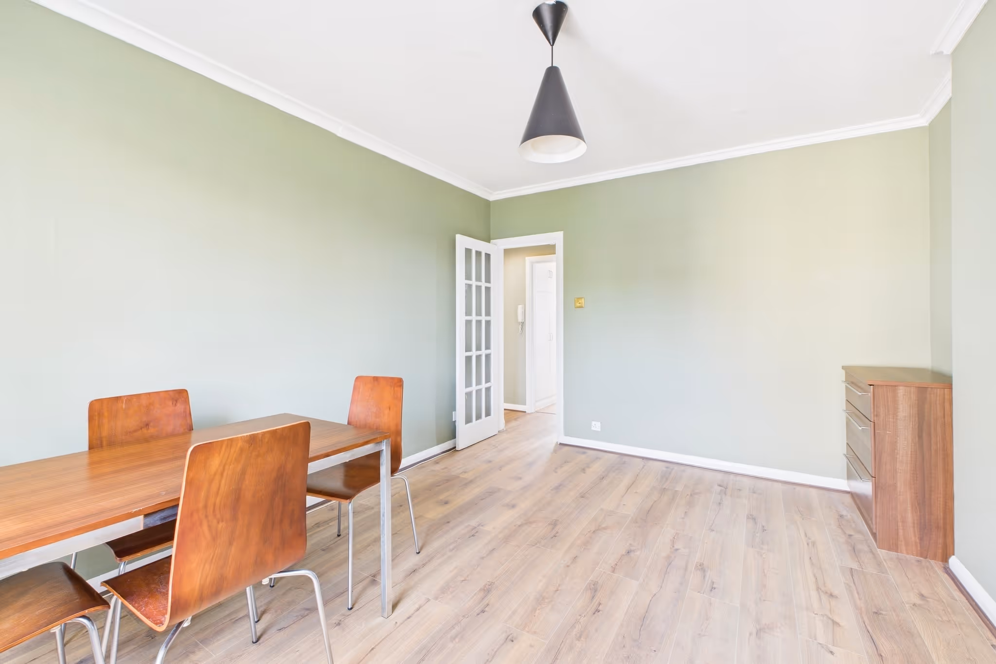Positioned on the fourth floor of a five-storey period building, the flat boasts original sash windows, bringing in an abundance of natural light and adding to the property's timeless character. Inside, the home has been newly redecorated in modern tones, complemented by wood-effect flooring throughout, creating a clean and contemporary feel.
