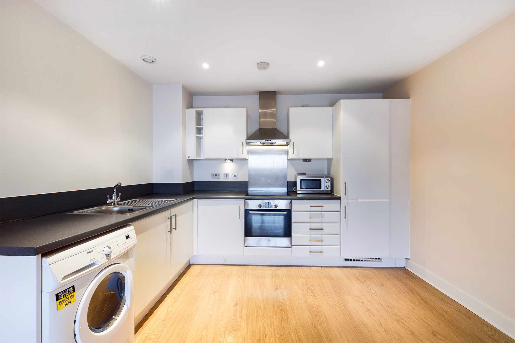 This lovely two bedroom apartment is located in the sought after gated community of Meath Crescent and offers wooden flooring throughout the communal and bedroom areas. The property comprises an open plan kitchen and living area with fully fitted modern kitchen, a master bedroom with en suite bathroom, a second good size bedroom and family bathroom inclusive of bath. Attached to the living room is also a private balcony overlooking Meath Gardens park.