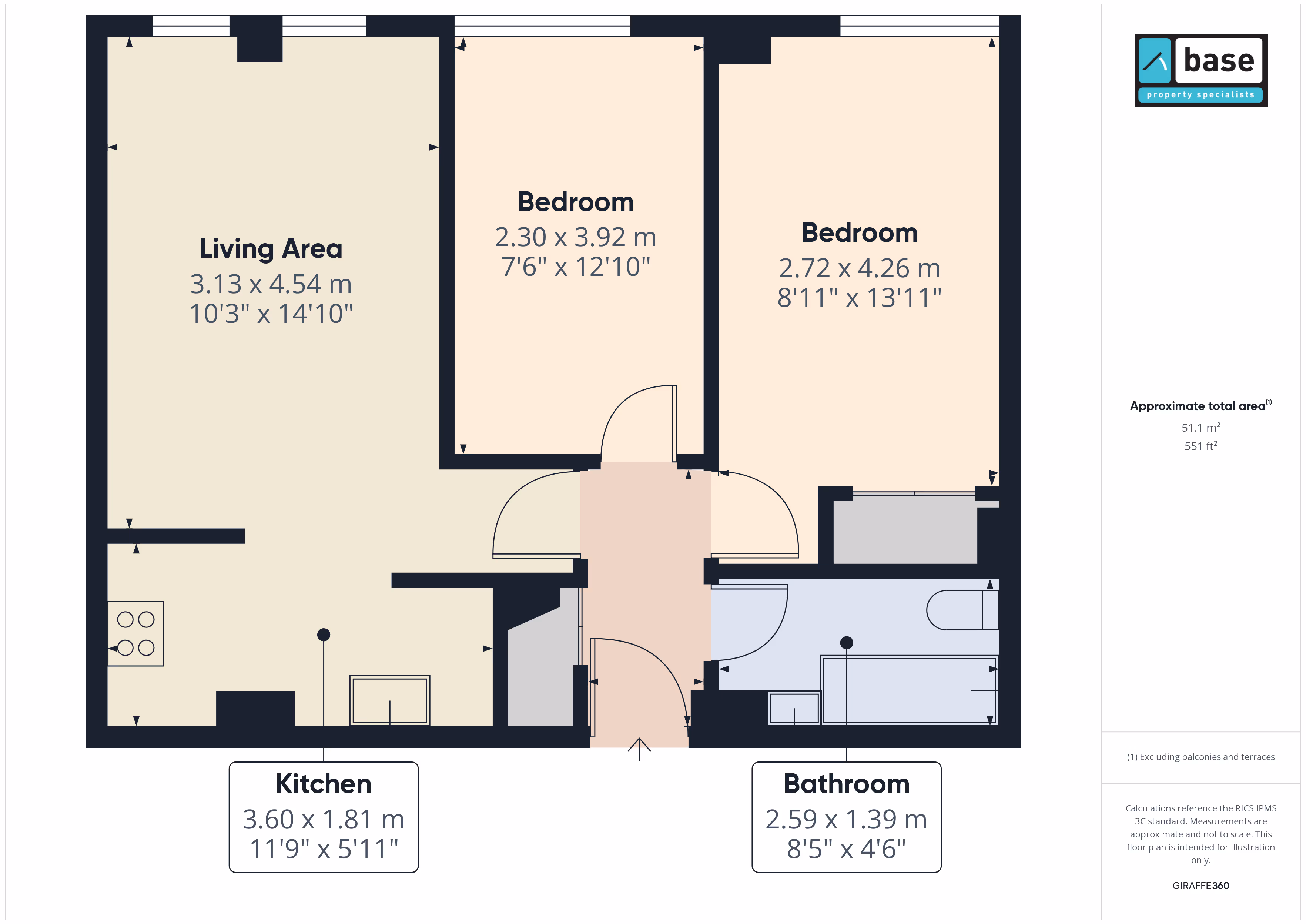 Both bedrooms are genuine doubles, each with large windows bringing in ample natural light. The bathroom is neatly finished with a shower-over-bath setup and has been recently refreshed with new sealant and light touches of TLC.