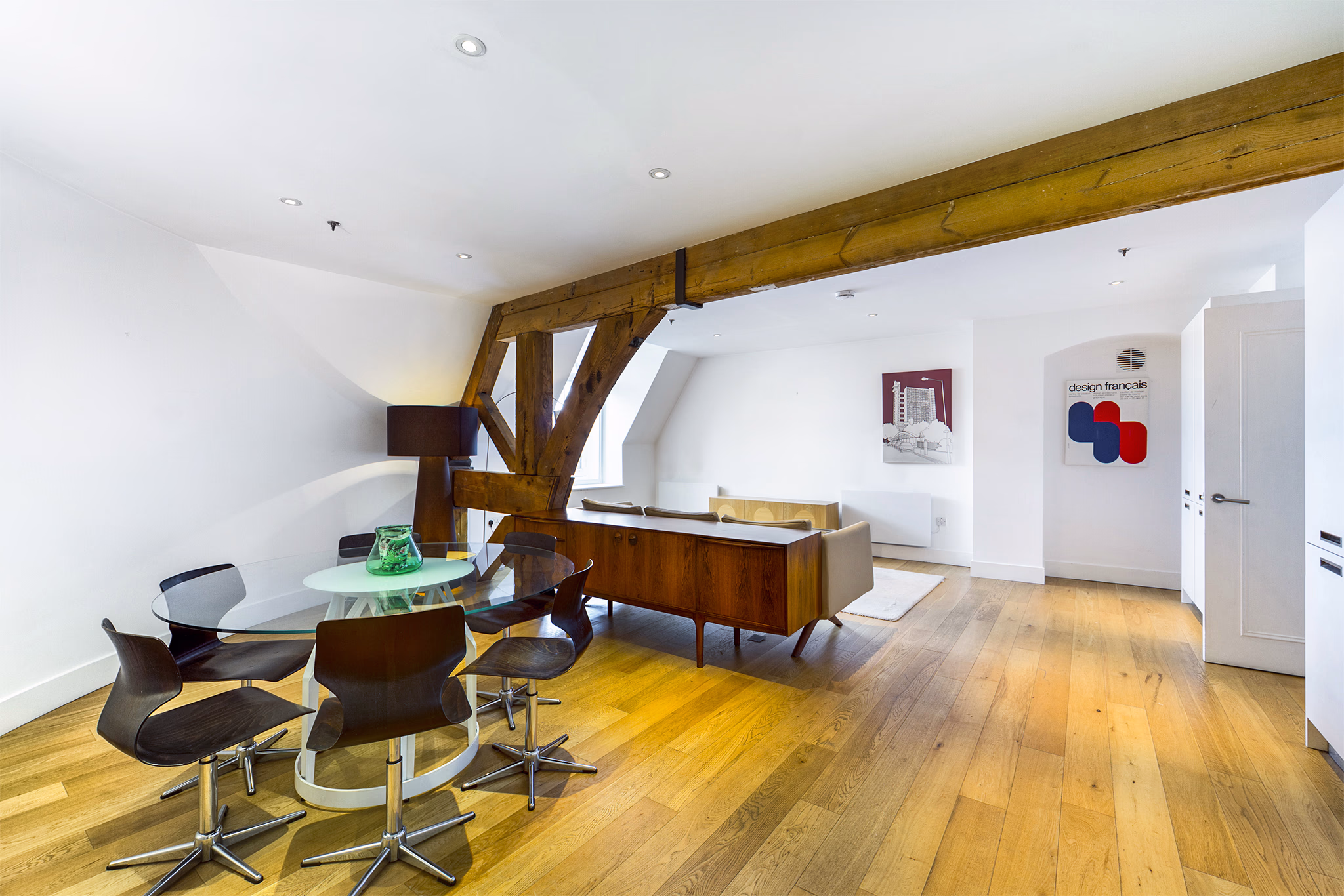 This striking two bedroom, two bathroom luxury apartment is set within the exclusive Grade I listed St Pancras Chambers, offering period features and luxury galore! The location suits the international business man/woman ideally, with St. Pancras International right on your doorstep offering easy and fast access to Europe via the Eurostar, as well as access to Tube, Rail and Buses. The apartment itself is charming as well as contemporary, with original features including wooden beams fused with modern high tech appliances making this property one to remember. Laid out over three floors, with a huge living area, luxury fitted kitchen with all mod cons, stairs leading to the upper floor with two double bedrooms, a large stunning bathroom and an en-suite shower room.